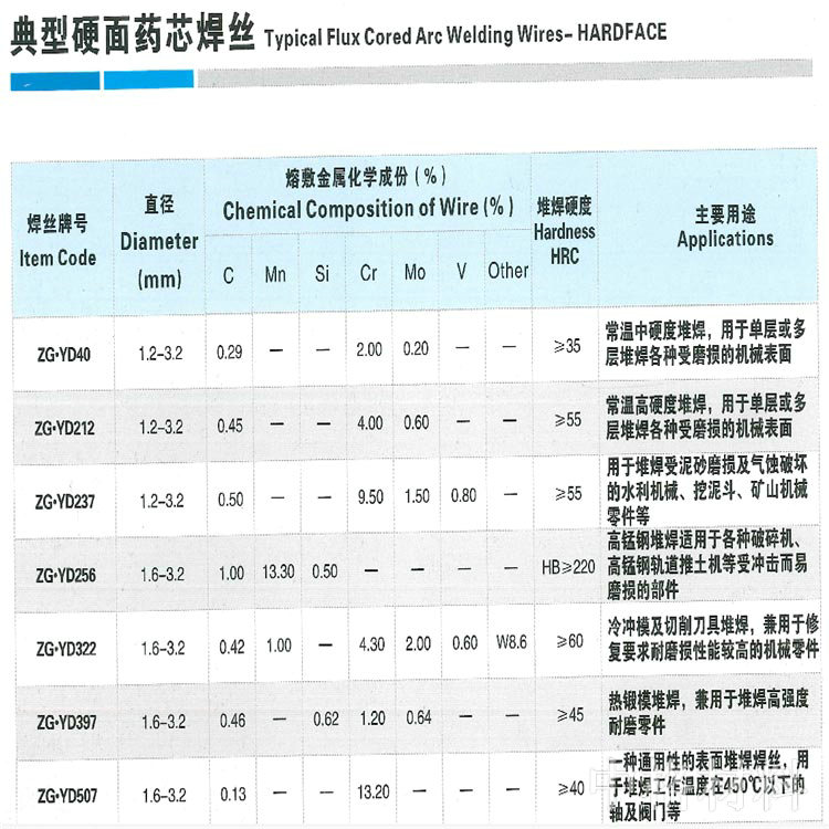 典型硬面藥芯焊絲